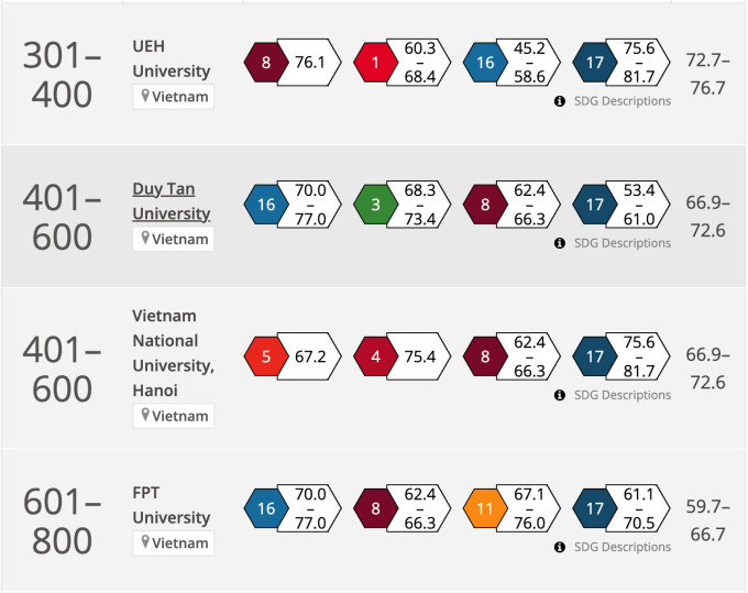 Việt Nam có 9 cơ sở giáo dục đại học vào bảng xếp hạng tầm ảnh hưởng của THE, tăng hai so với năm ngoái và đông nhất từ trước đến nay. Tổ chức xếp hạng Times Higher Education (THE), tối 1/6 công bố bảng xếp hạng đại học có tầm ảnh hưởng (Impact Rank ...