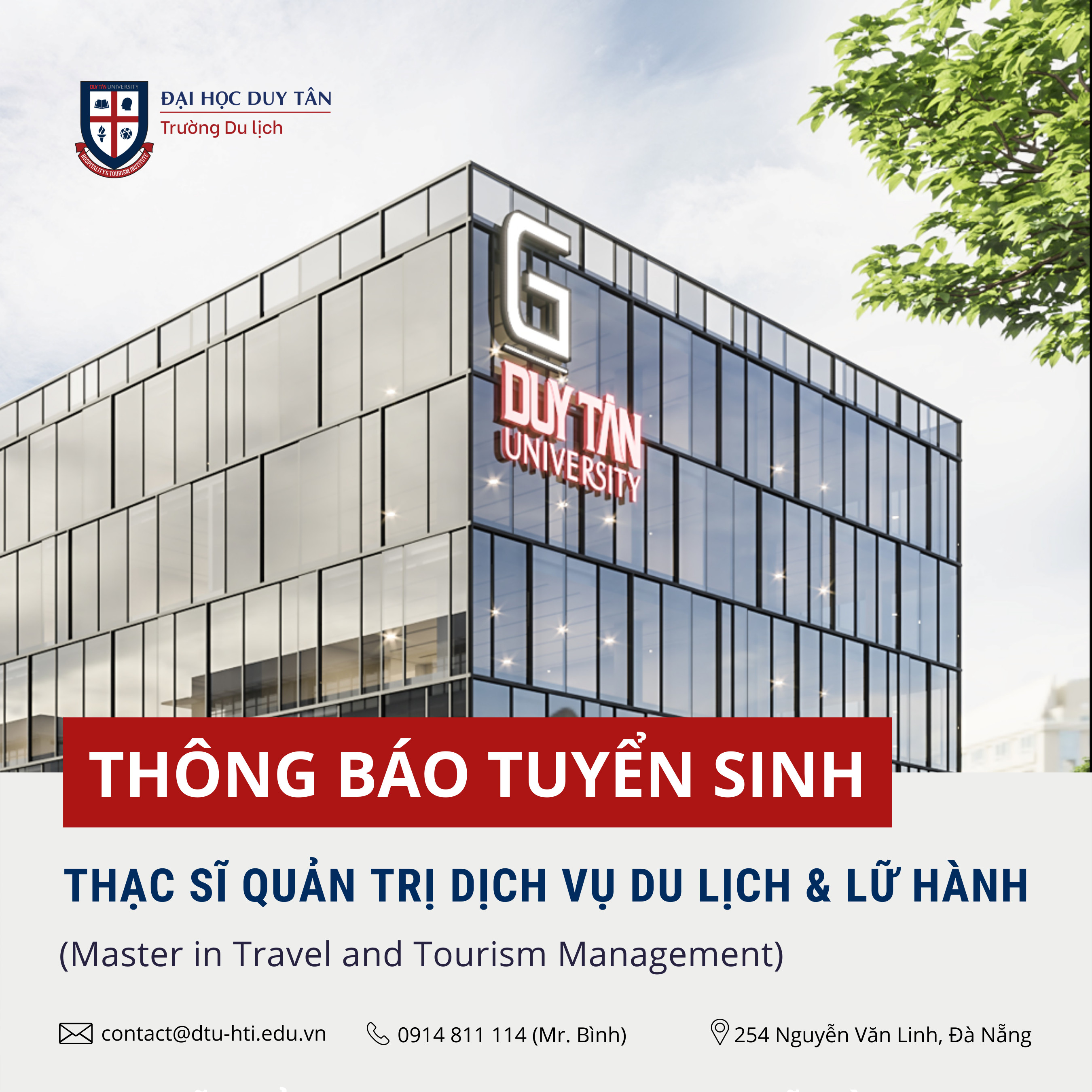 Trường Du Lịch, Đại học Duy Tân được biết đến là ngôi trường đào tạo Du lịch lớn nhất và nổi tiếng nhất Việt Nam. Đây cũng là trường đầu tiên và duy nhất tại Việt Nam đạt kiểm định Tedqual của UNWTO (Tổ chức Du lịch thế giới thuộc Liên Hợp Quốc). ...