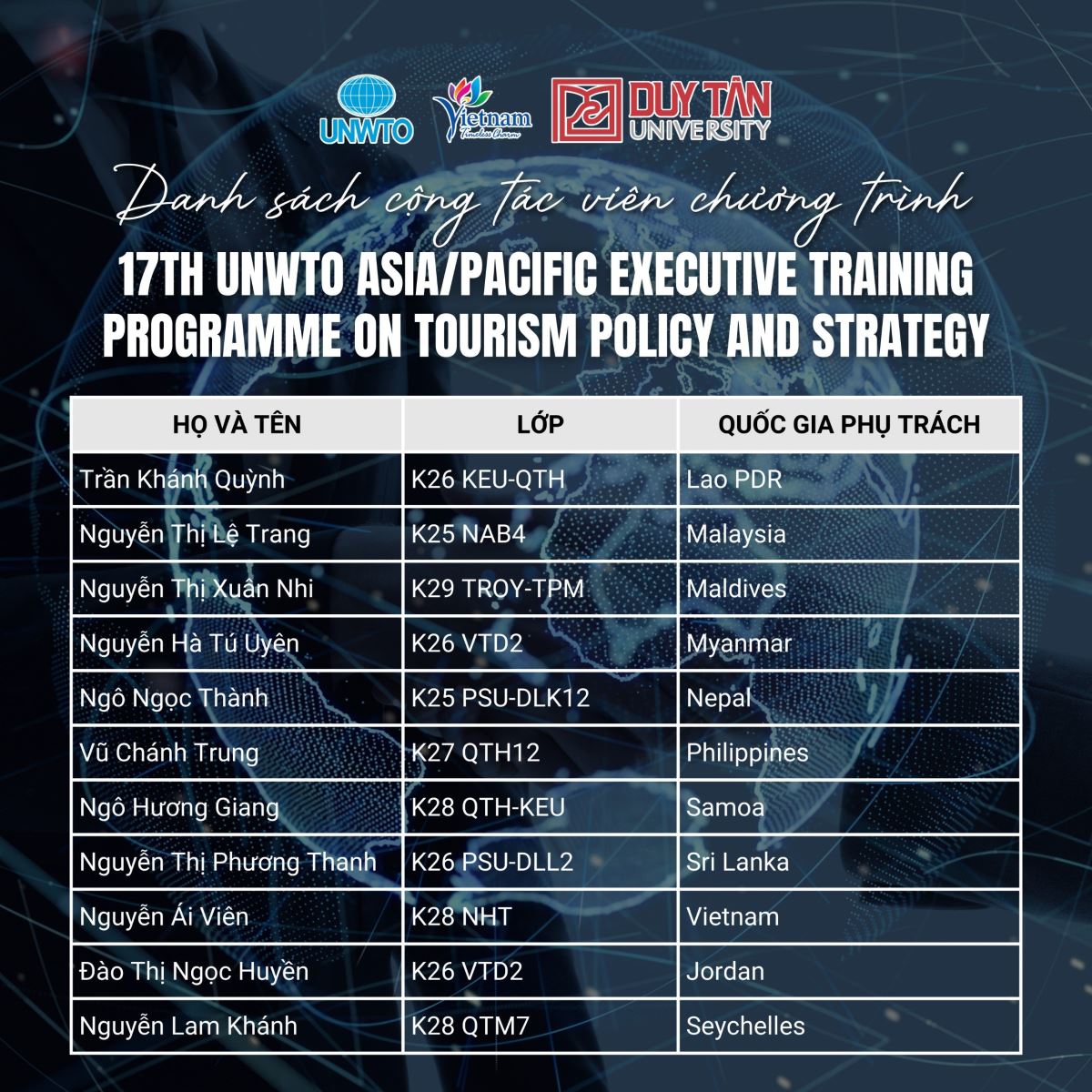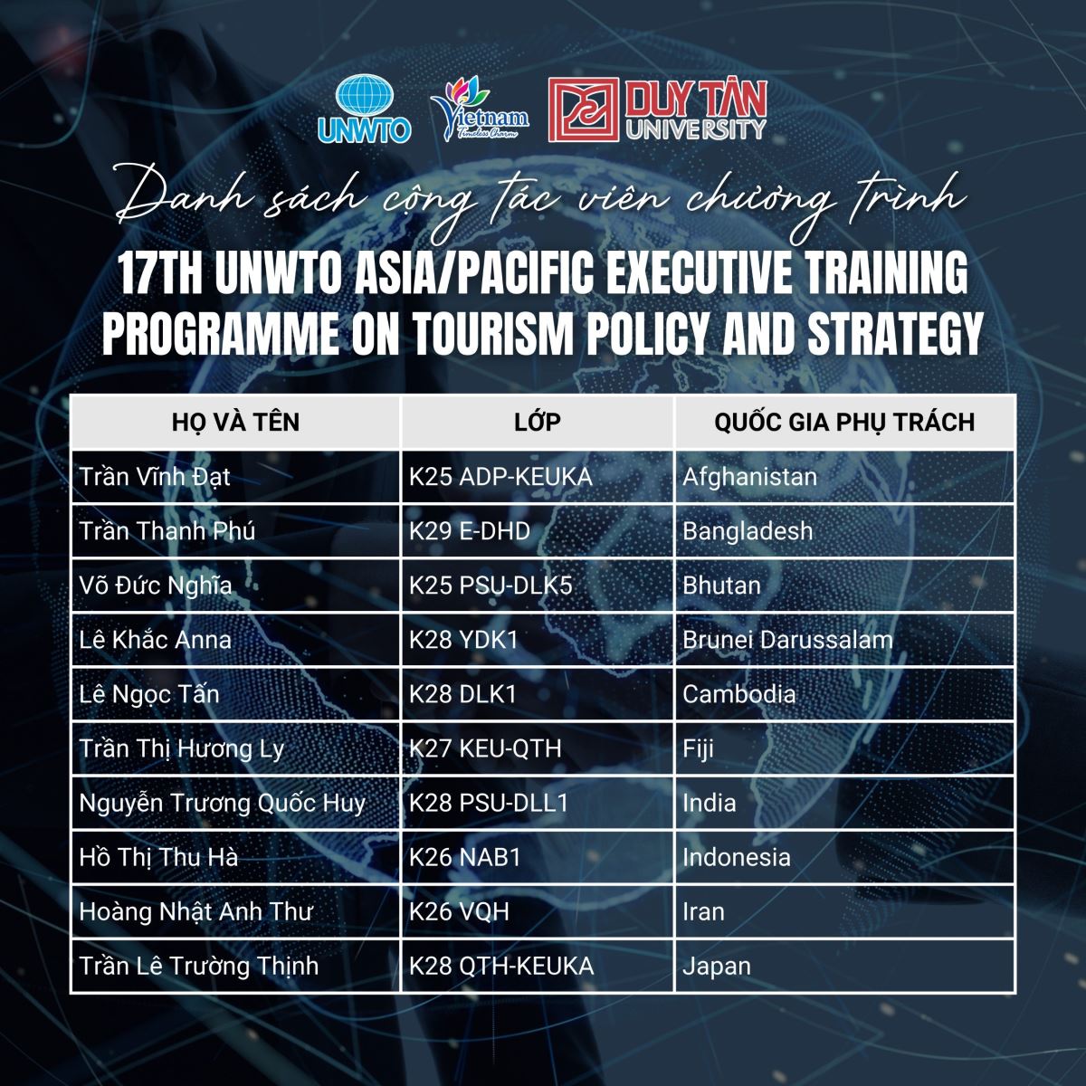 Danh sách Cộng tác viên trúng tuyển chương trình 17th UNWTO_ETP