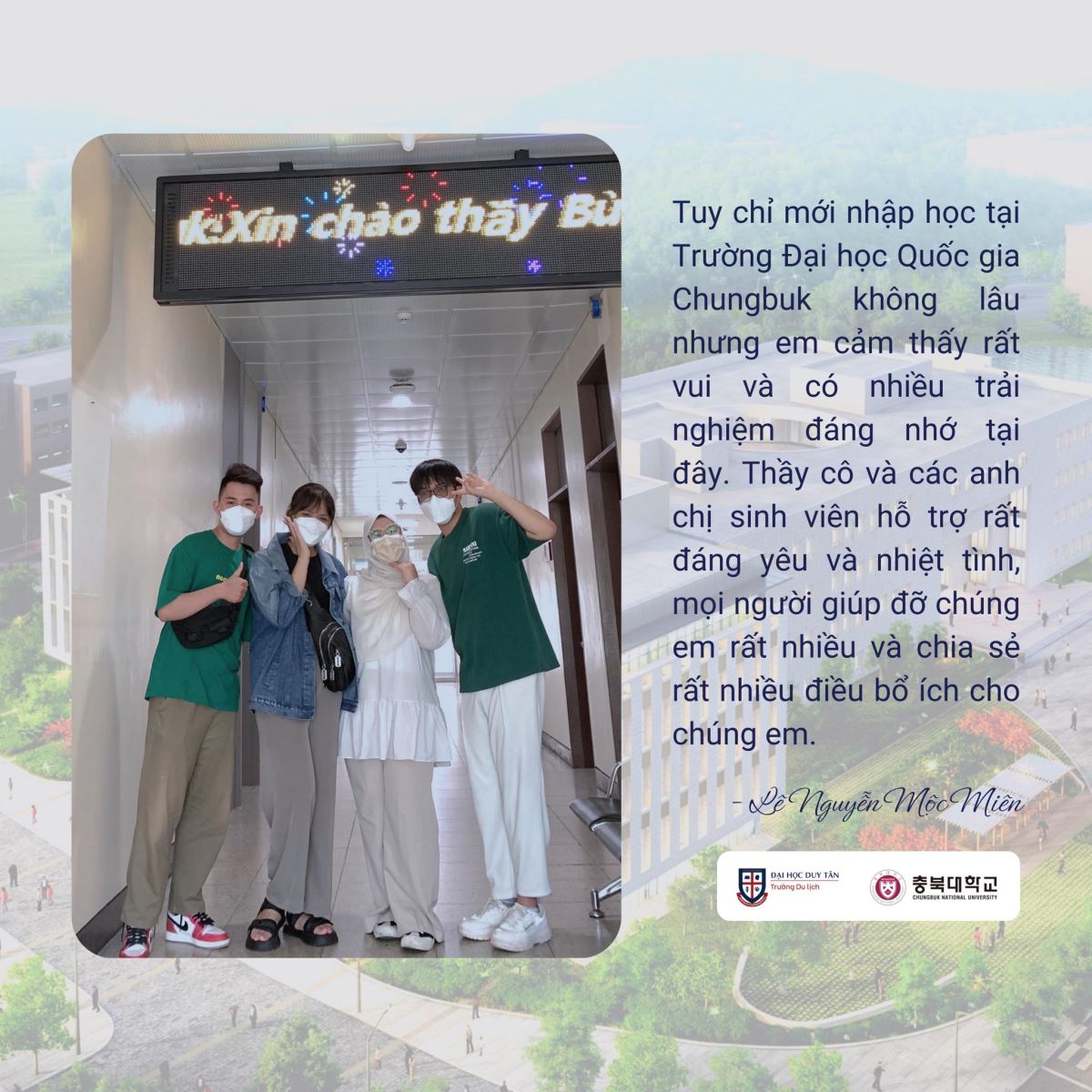 ĐÔI BẠN CÙNG NHAU THAM GIA CHƯƠNG TRÌNH TRAO ĐỔI SINH VIÊN TẠI ĐẠI HỌC QUỐC GIA CHUNGBUK, HÀN QUỐC