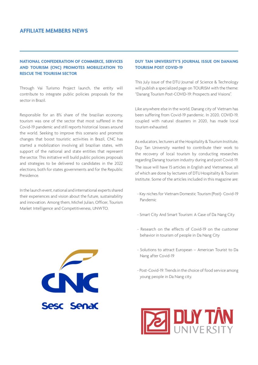 Chuyên san Du lịch (Du lịch Đà Nẵng hậu COVID-19: Triển vọng và tầm nhìn) trên tạp chí Khoa học và công nghệ DTU được giới thiệu trên AM NEWSLETTER - VOLUME 33 dành cho Thành viên liên kết của Tổ chức Du lịch thế giới (UNWTO).