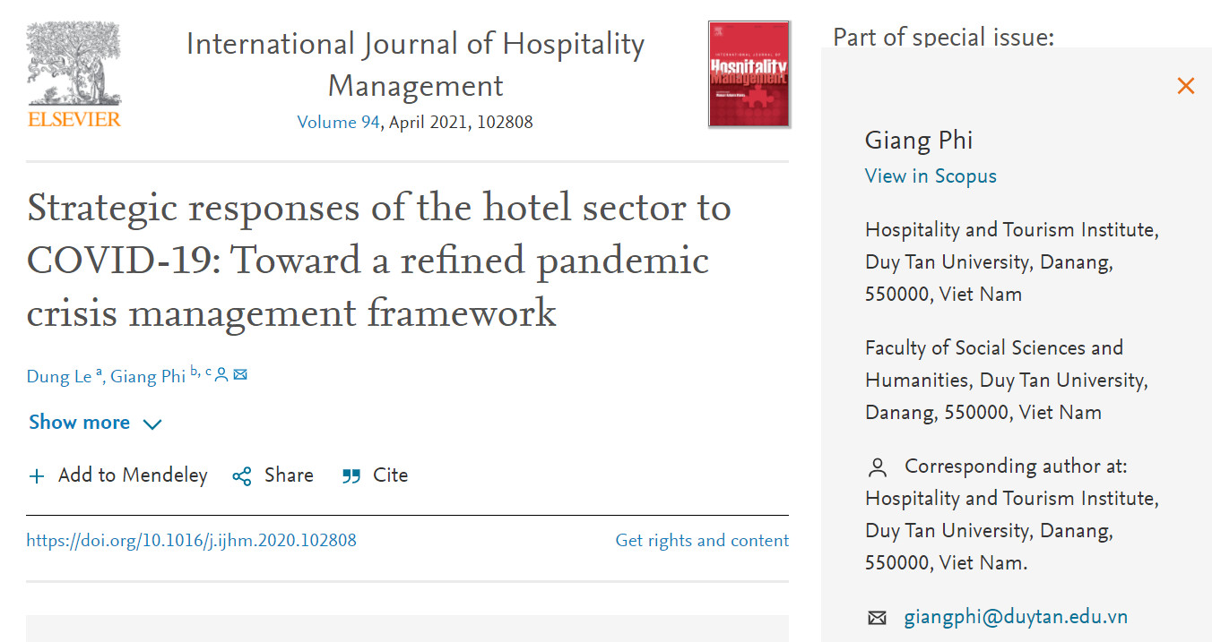 Công bố quốc tế năm học 2020-2021 của Viện ĐT&NC Du lịch Duy Tân