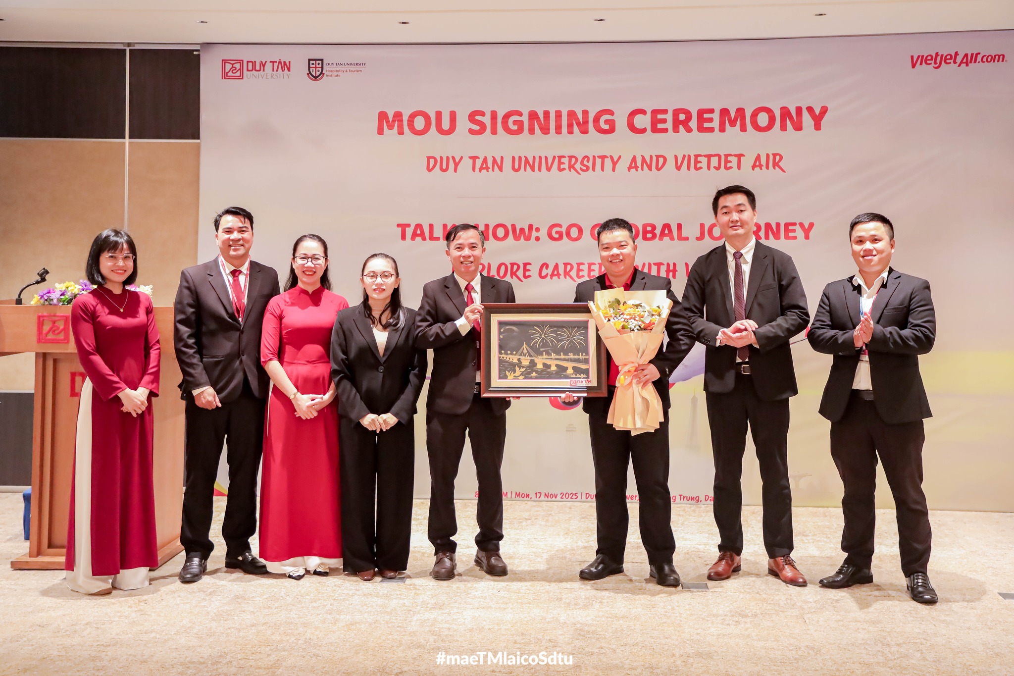 Sự kiện hợp tác giữa Đại học Duy Tân và Vietjet Air thêm một lần nữa khẳng định tầm nhìn quốc tế của Trường Du lịch – Đại học Duy Tân, nơi các chương trình đào tạo luôn hướng đến sự hội nhập, thực tiễn và phát triển bền vững.