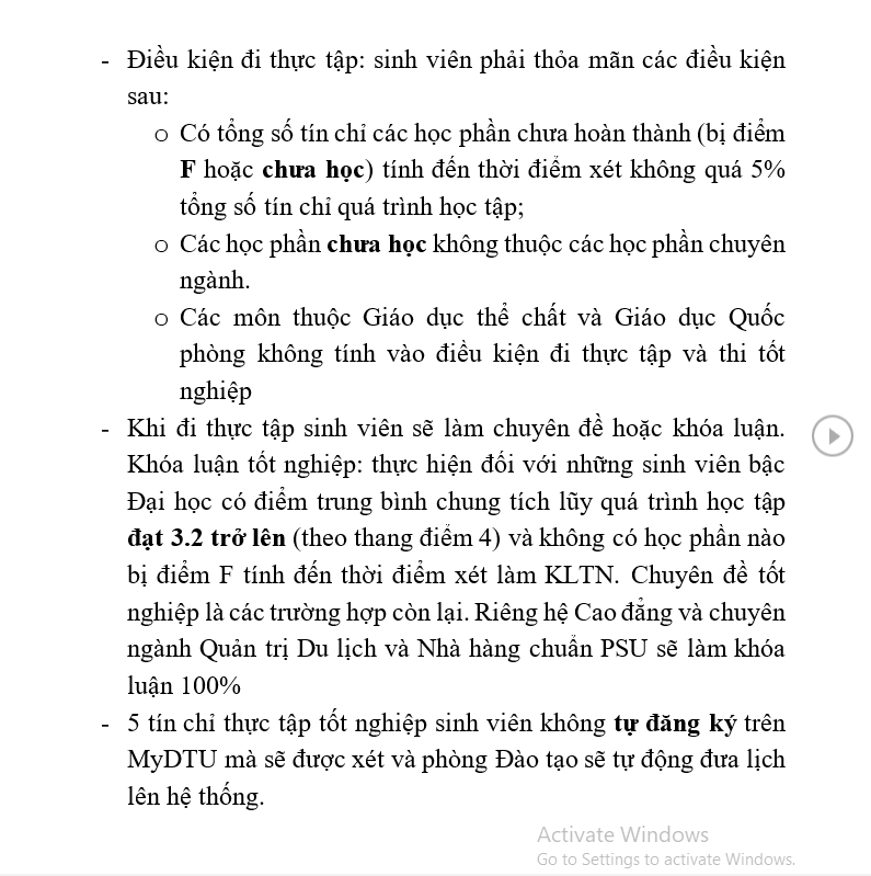 *** Điều kiện tham gia thực tập tốt nghiệp cuối khóa: