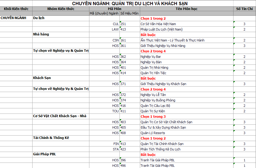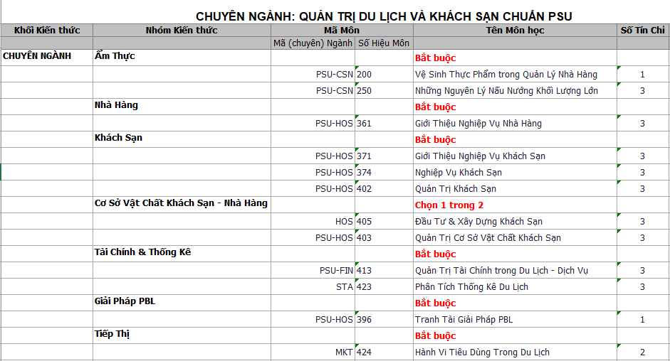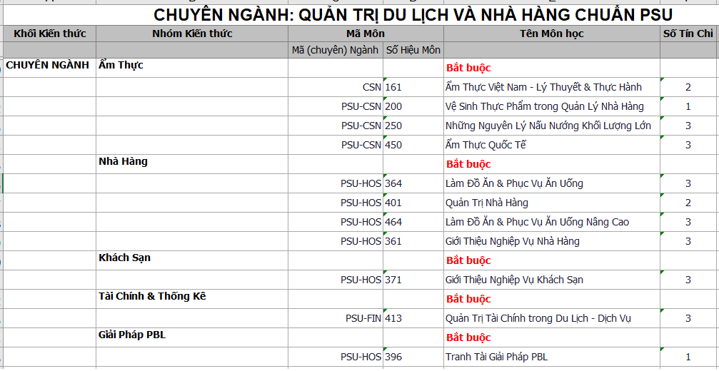 *** Đối với sinh viên bậc Cao đẳng (Chương trình thường & Chương trình PSU), sinh viên chuyên ngành Quản trị Du lịch & Nhà hàng chuẩn PSU yêu cầu 100% sinh viên làm KLTN.