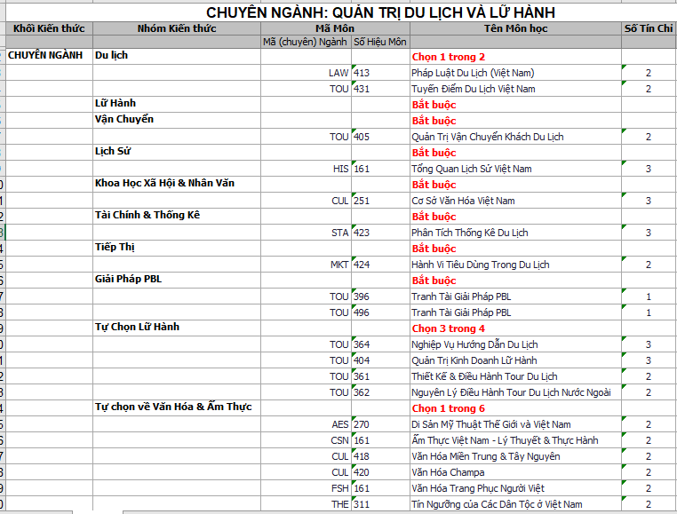 - Các học phần (môn) chưa học không thuộc các học phần (môn) chuyên ngành.