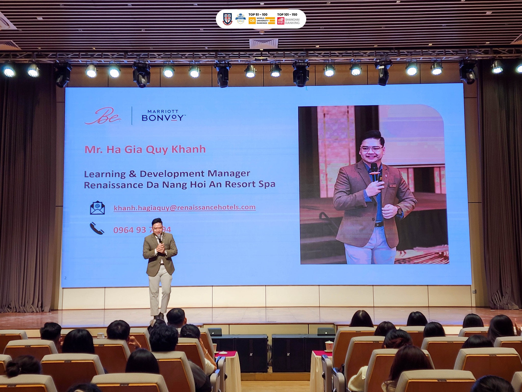 Vừa qua, sinh viên ngành Quản trị Khách sạn Quốc tế, Trường Du lịch – Đại học Duy Tân đã có buổi giao lưu và chia sẻ bổ ích cùng ông Hà Gia Quý Khánh – Quản lý Đào tạo & Phát triển nguồn nhân lực, Renaissance Hội An Resort & Spa.