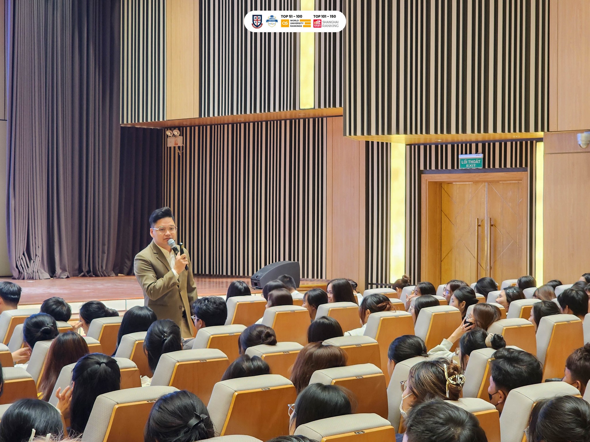 Với bề dày kinh nghiệm trong lĩnh vực quản trị và phát triển nhân sự khách sạn quốc tế, ông Khánh đã mang đến cho sinh viên nhiều bài học thực tiễngóc nhìn đa chiều về hành trình nghề nghiệp. Từ kỹ năng cần thiết để chinh phục môi trường làm việc 5 sao, đến những cơ hội rộng mở cho thế hệ trẻ trong ngành khách sạn – du lịch, những chia sẻ của ông đã giúp sinh viên hình dung rõ hơn con đường nghề nghiệp tương lai.