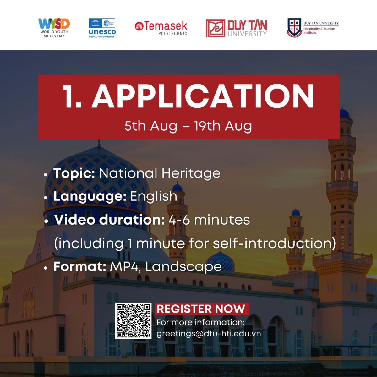 Các bạn quay 1 video giới thiệu bản thân và giới thiệu 1 di sản quốc gia mà các bạn thích. Sau đó điền đơn đăng ký và đính kèm link video của các bạn