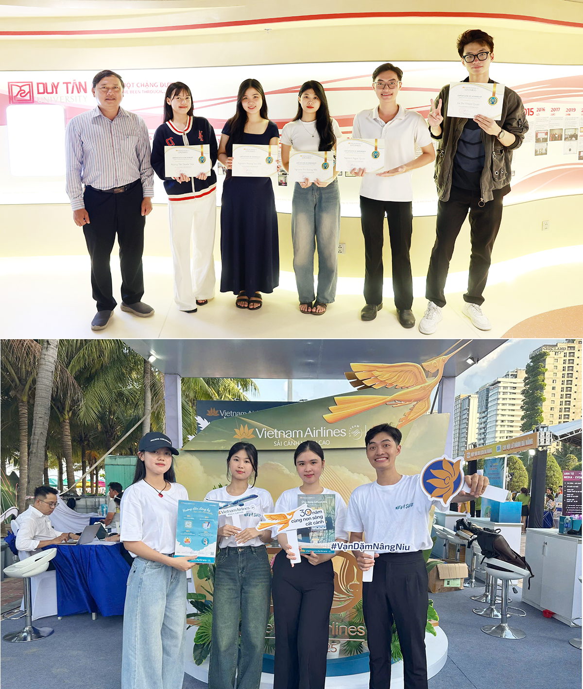 5 sinh viên của Trường Du lịch (HTi), Đại học (ĐH) Duy Tân vừa chính thức nhận chứng chỉ thực tập, ghi nhận những nỗ lực và đóng góp trong các hoạt động do Vietnam Airlines tổ chức.