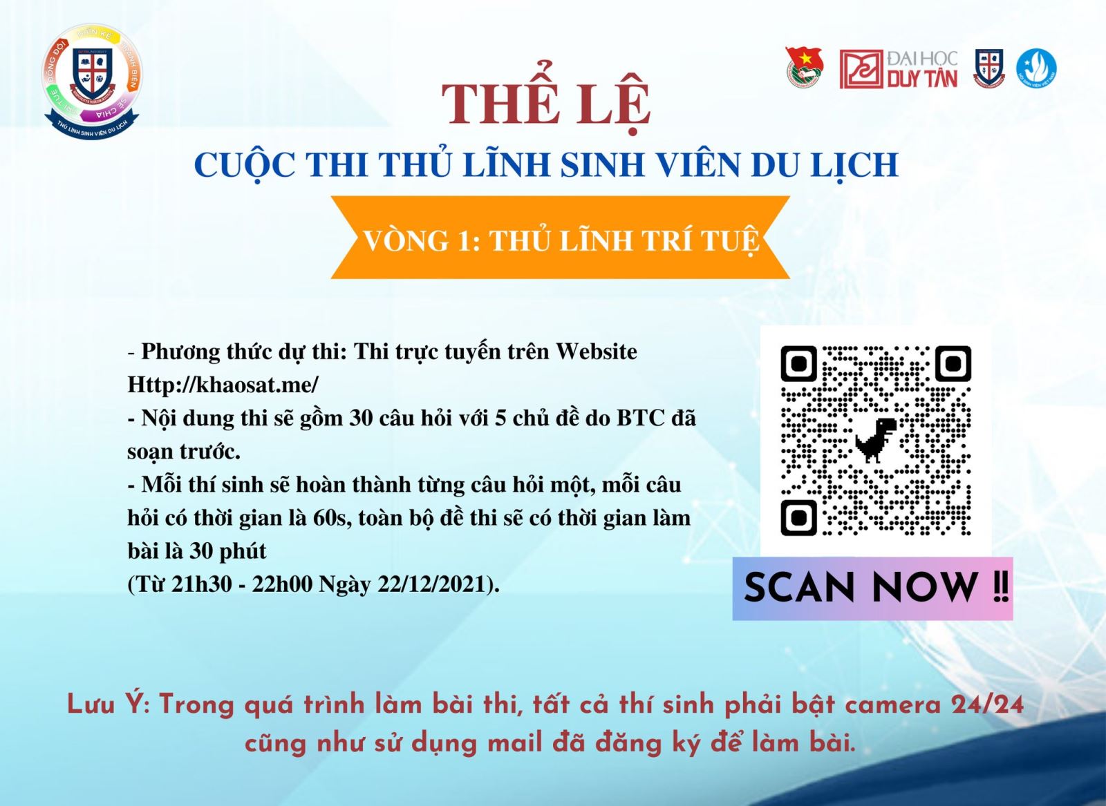 - Thời gian diễn ra bài thi: 21h30 - 22h00 Ngày 22/12/2021