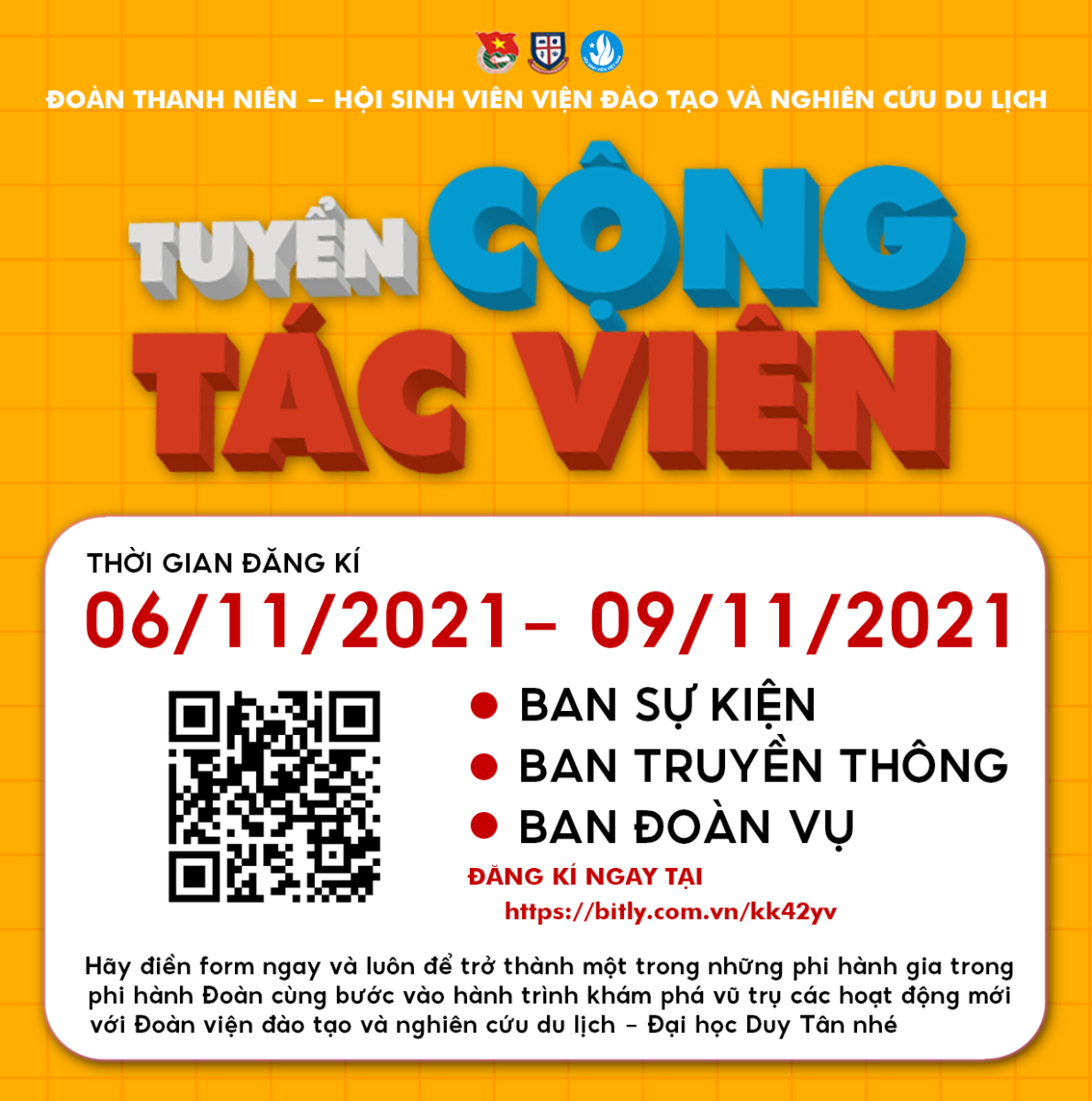 TUYỂN CTV ĐOÀN VIỆN ĐT & NC DU LỊCH ĐẠI HỌC DUY TÂN NĂM HỌC 2021 - 2022