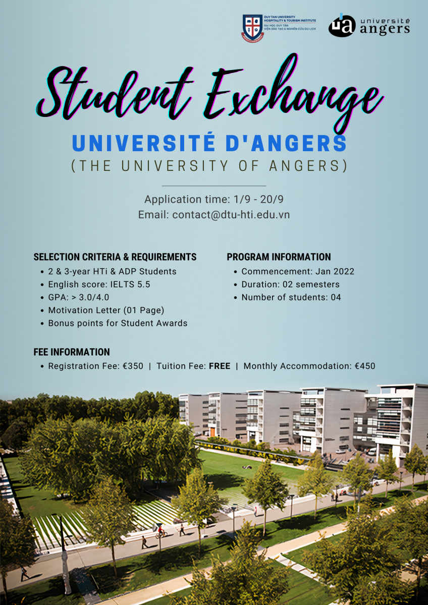 TUYỂN SINH VIÊN CHƯƠNG TRÌNH DU HỌC TRAO ĐỔI TẠI THE UNIVERSITY OF ANGERS, PHÁP