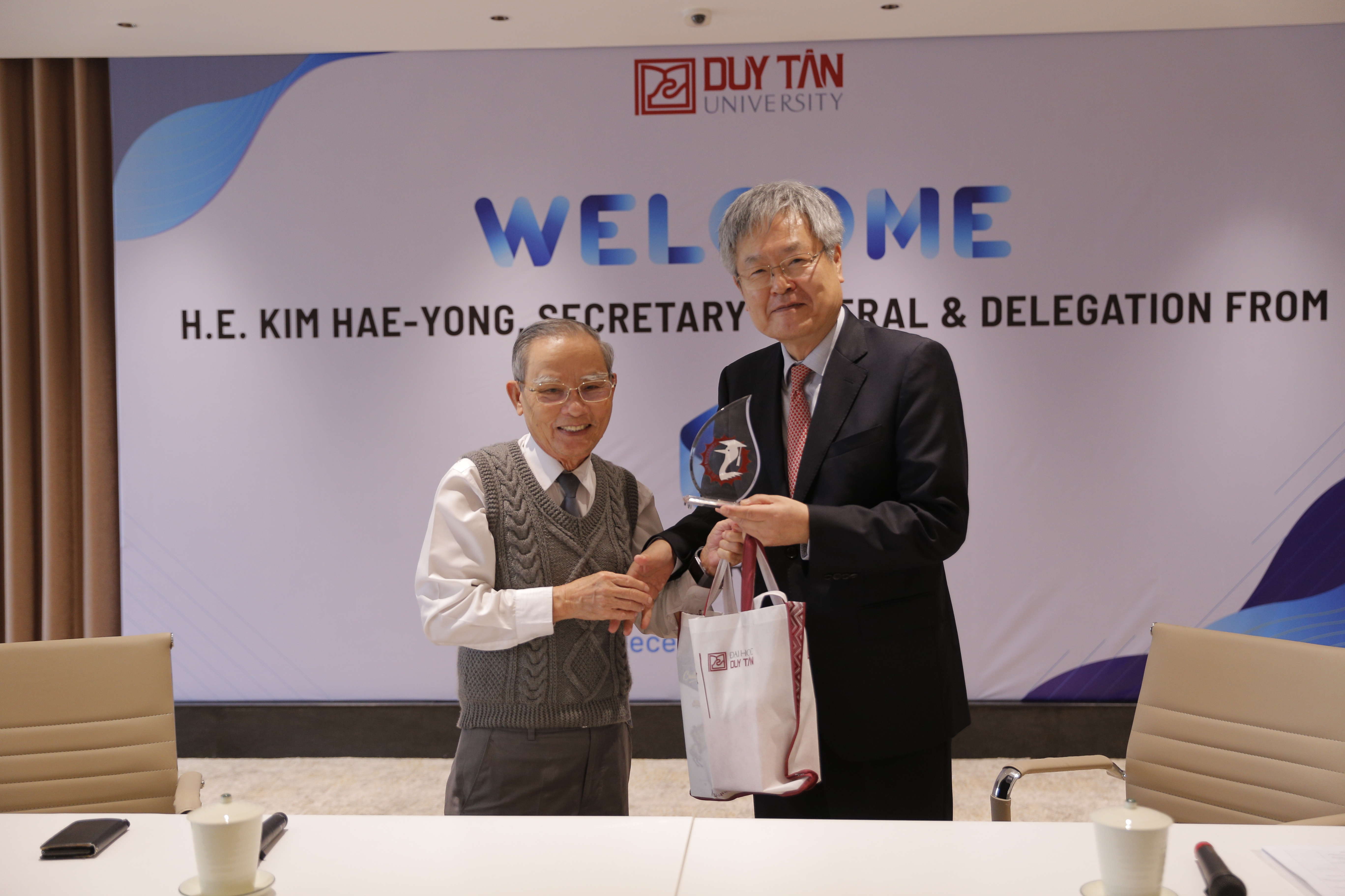 Xem thêmSáng ngày 16/12/2022, ông Kim Hae-yong - Tổng Thư ký Trung tâm ASEAN - Hàn Quốc (AKC) cùng đoàn công tác đã đến thăm và làm việc với Đại học Duy Tân. Anh hùng Lao động, Nhà giáo Ưu tú, Lê Công Cơ - Chủ tịch Hội đồng Trường Đại học Duy Tân và lãnh đạo ...