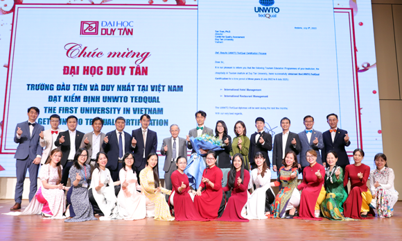 Sáng ngày 20/8/2022, Đại học Duy Tân đã tổ chức Lễ Công bố đạt kiểm định TedQual do Tổ chức Du lịch Thế giới thuộc Liên Hợp Quốc (UNWTO - United Nations World Tourism Organization) công nhận cho 2 chương trình đạo tạo gồm Quản trị Khách sạn Quốc tế v ...