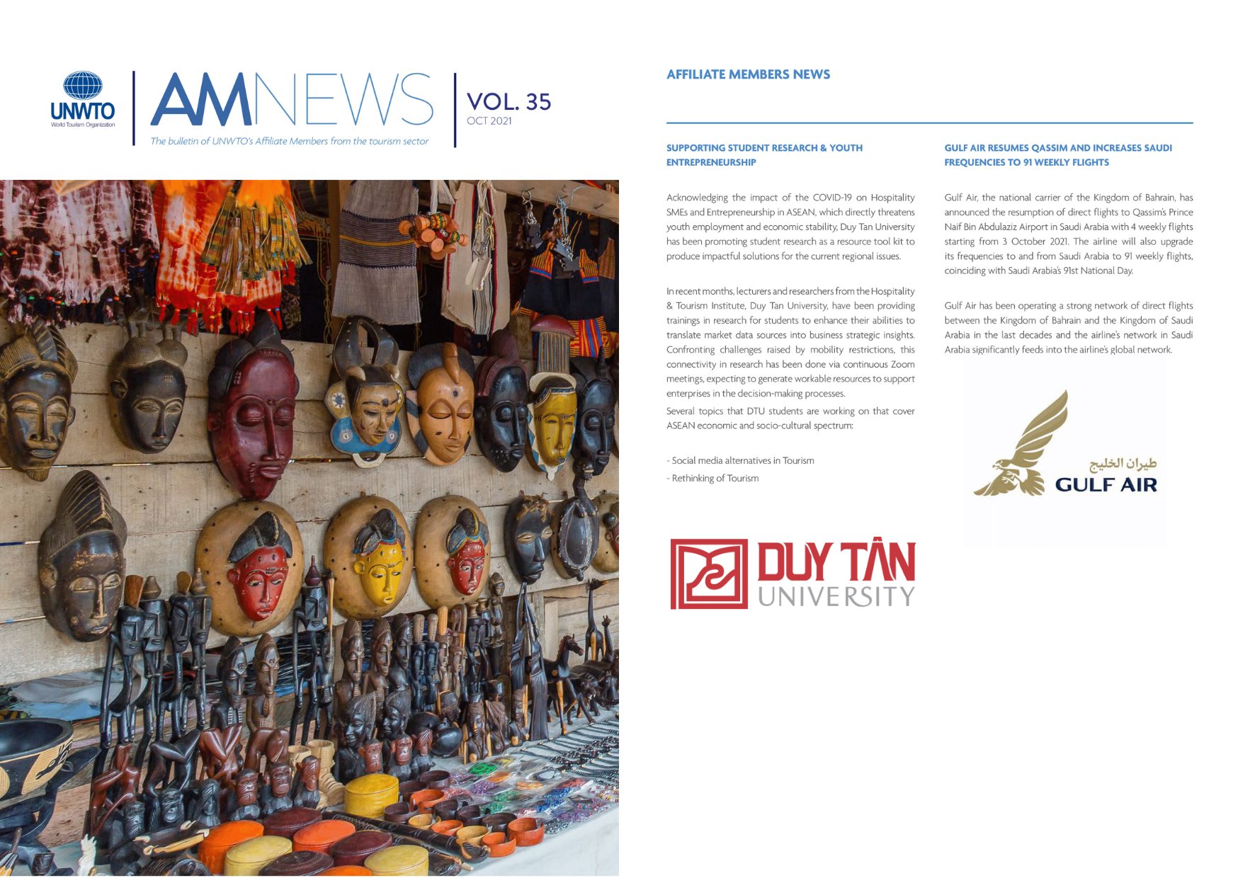 Là thành viên liên kết duy nhất tại Việt Nam của UNWTO - Tổ chức Du lịch Thế giới, hàng tháng, những hoạt động, dự án và sáng kiến của Viện ĐT&NC Du lịch, Đại học Duy Tân sẽ được chia sẻ trên tập báo hàng tháng AM News (Affiliate Members News) của UN ...