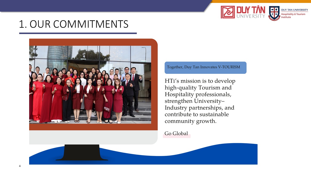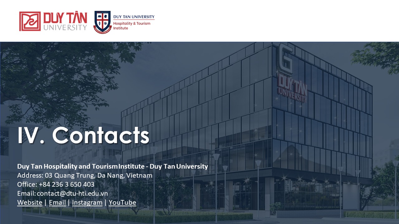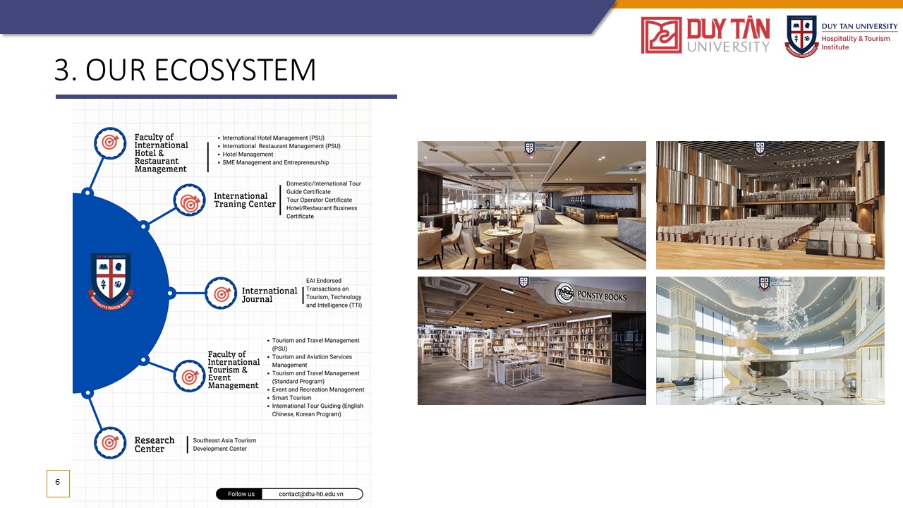 Đào tạo ra những nhân tài trong ngành Khách sạn và Du lịch với hệ thống giáo dục và nghiên cứu đẳng cấp thế giới cho thời đại Công nghiệp 4.0, đồng thời phát triển mô hình quan hệ giữa nhà trường và doanh nghiệp, thúc đẩy khả năng giải quyết vấn đề và cung cấp dịch vụ xã hội thông qua phương pháp vừa học vừa làm.