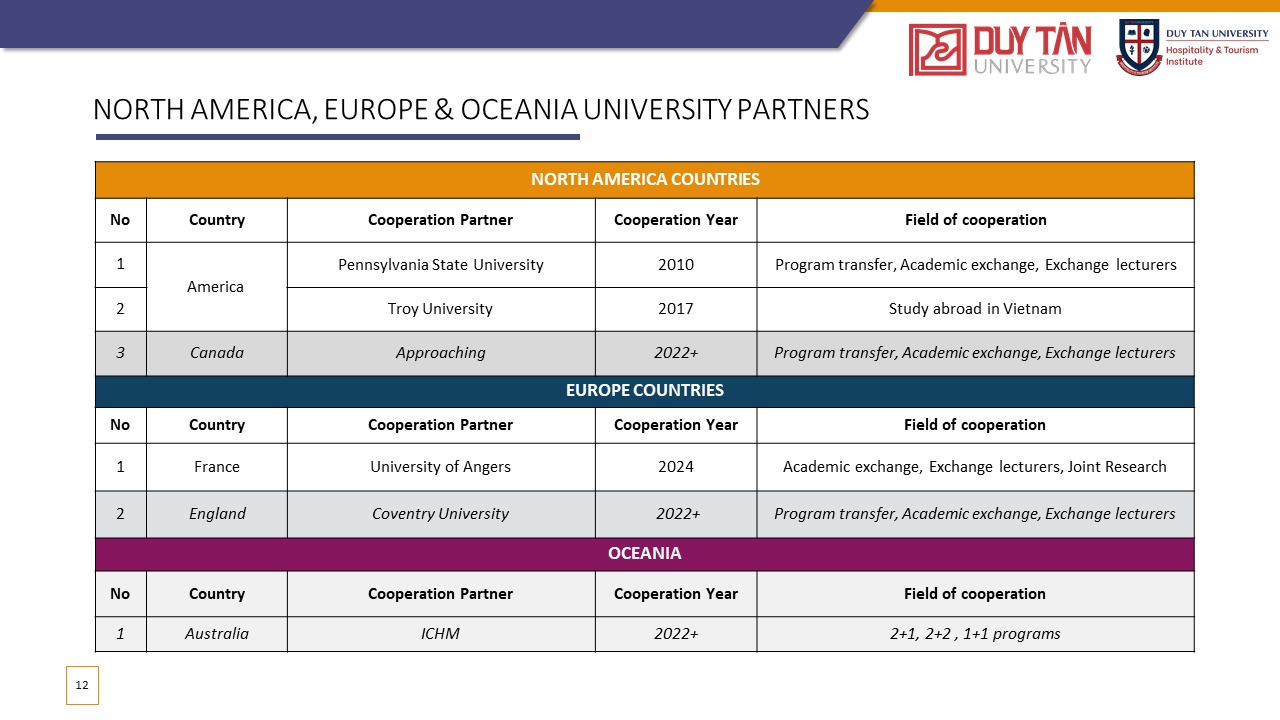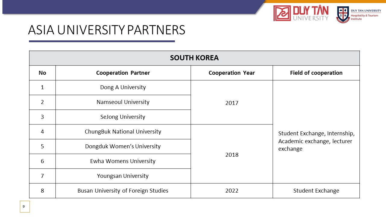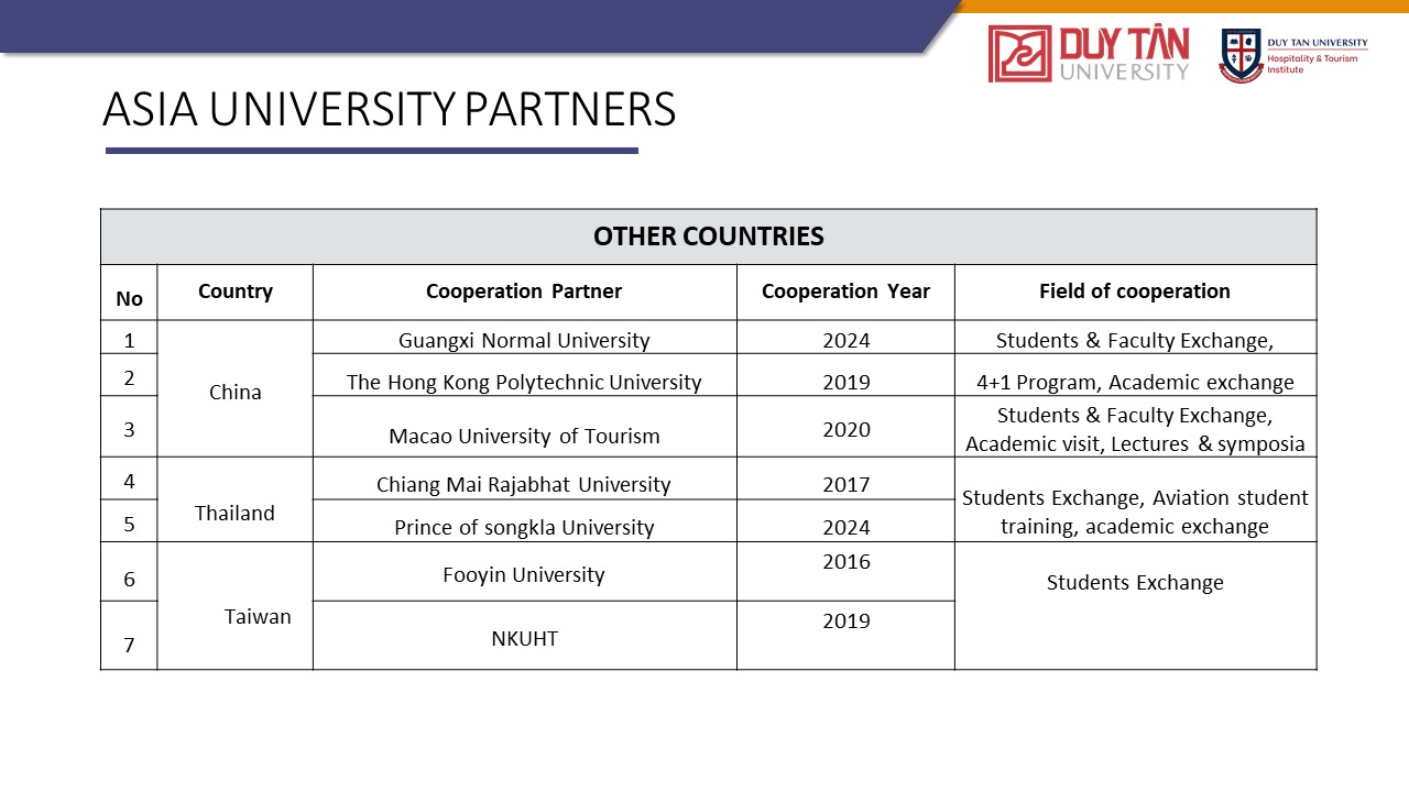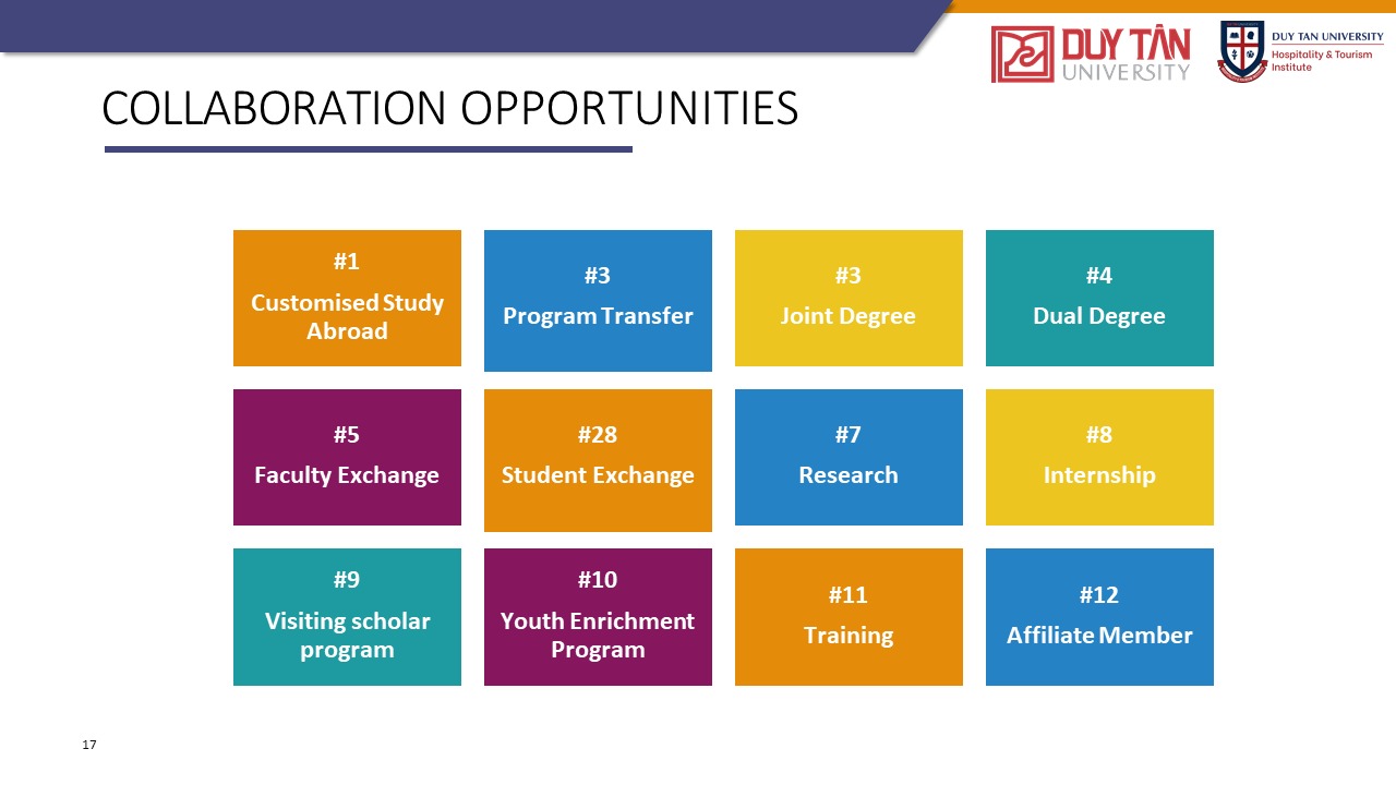 Đào tạo ra những nhân tài trong ngành Khách sạn và Du lịch với hệ thống giáo dục và nghiên cứu đẳng cấp thế giới cho thời đại Công nghiệp 4.0, đồng thời phát triển mô hình quan hệ giữa nhà trường và doanh nghiệp, thúc đẩy khả năng giải quyết vấn đề và cung cấp dịch vụ xã hội thông qua phương pháp vừa học vừa làm.