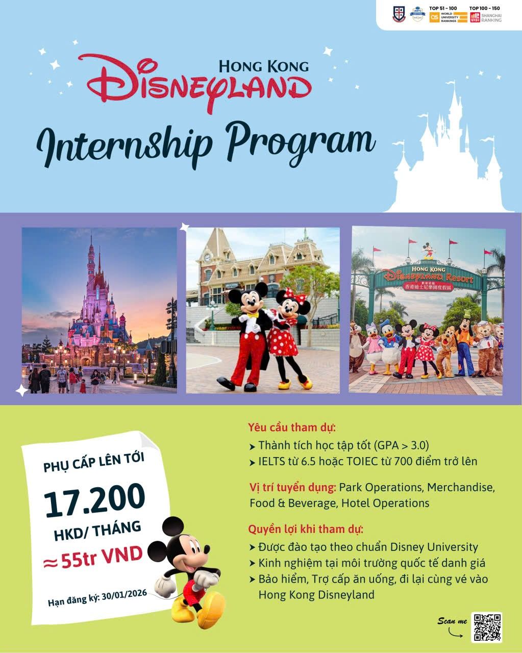 Đây là cơ hội để sinh viên vừa học – vừa làm – vừa tích lũy kinh nghiệm thực tế, nâng cao trình độ tiếng Anh và phát triển kỹ năng nghề nghiệp trong môi trường quốc tế chuẩn Disney.