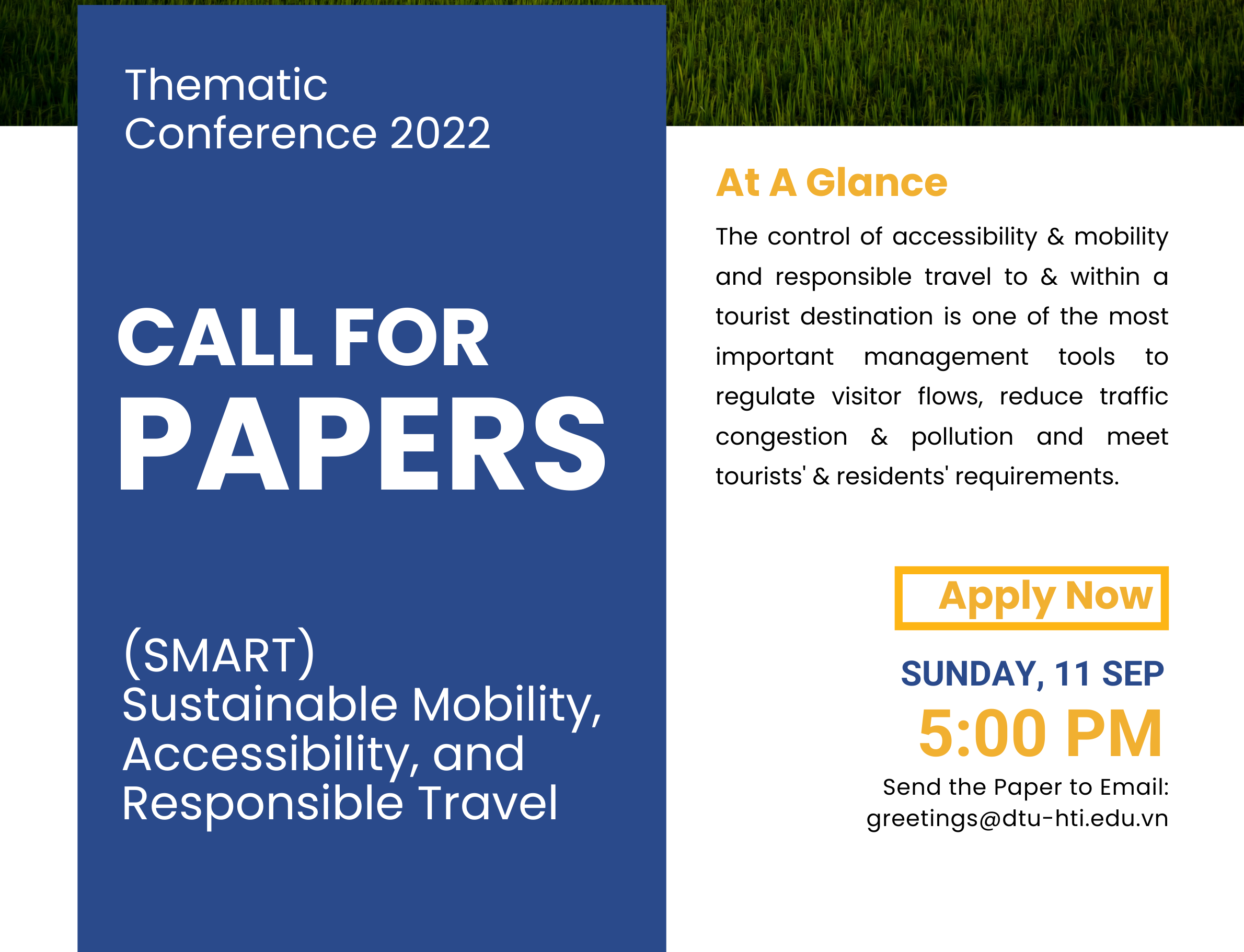 Hội nghị quốc tế lần thứ 12 về "Du lịch & Phát triển bền vững: Rủi ro và cơ hội trong thời kỳ bất ổn" nhằm cung cấp một diễn đàn cho các học giả, nhà nghiên cứu mới nổi, nhà hoạch định chính sách, người thực hành trong ngành, chuyên gia tiếp thị và n ...